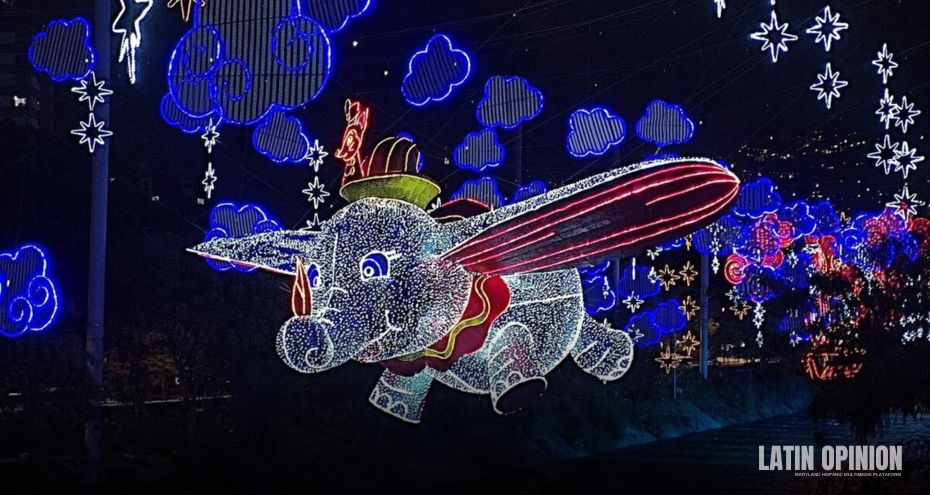 Dumbo, Mickey y sus amigos, Bambi, Simba, Timón y Pumba, brillan en Medellín como protagonistas del tradicional alumbrado navideño que este año ilumina 41 puntos de la ciudad con nueve millones de bombillas para celebrar a Disney en su centenario recreando a los personajes más emblemáticos de sus afamadas películas.