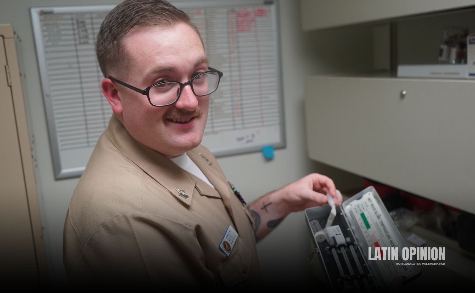 El suboficial de segunda clase Logan Pentz, originario de Havre de Grace, Maryland, sirve en la Marina de los EEUU asignado al Comando de Preparación y Entrenamiento de Medicina Naval (USNMRTC) en Rota, España.